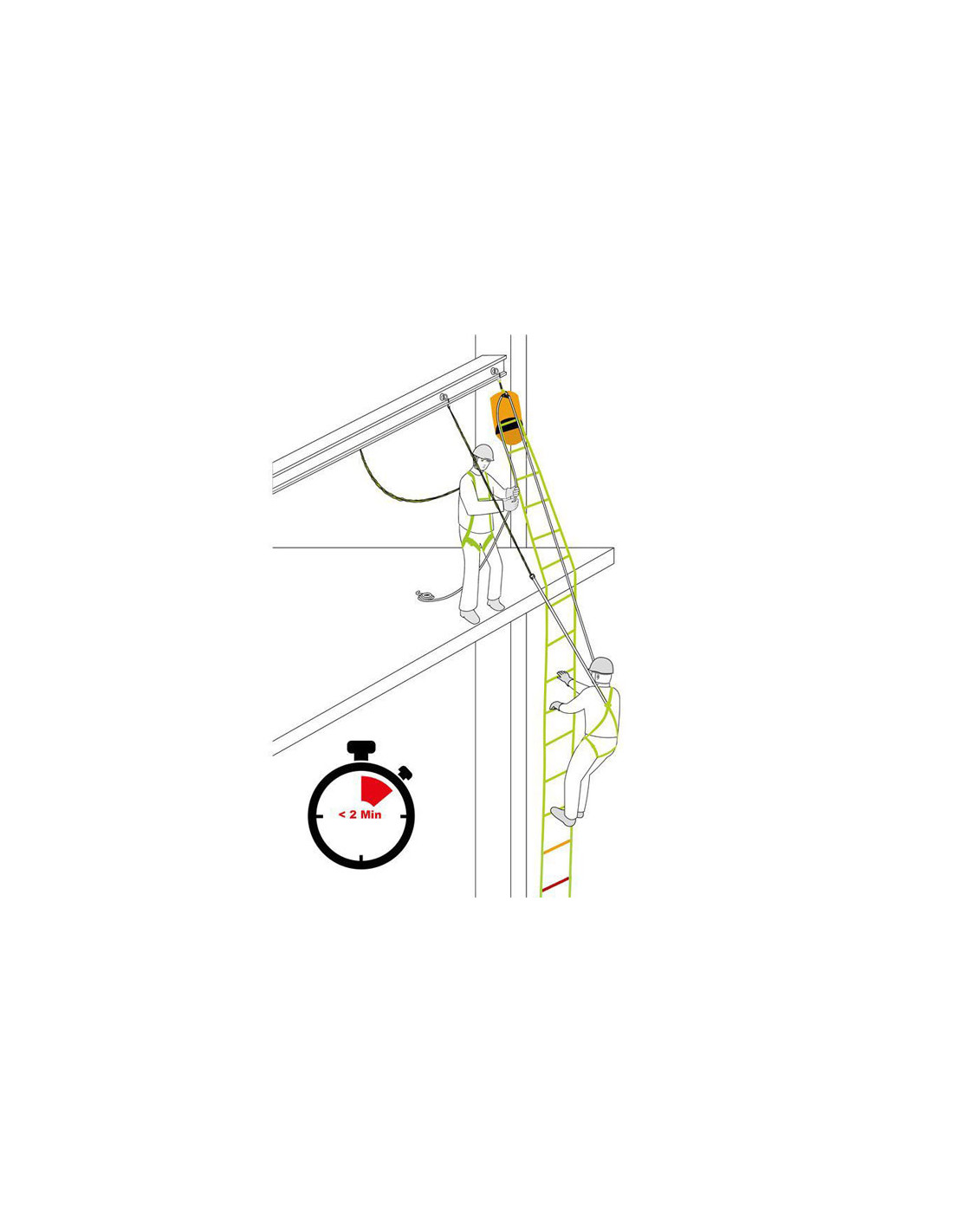 Kompaktní, přenosný a lehký je navržen pro záchranu a evakuaci každého uživatele, který utrpěl pád z výšky a neztratil vědomí, protože vyžaduje, aby poškozený byl spolupracovníkem.