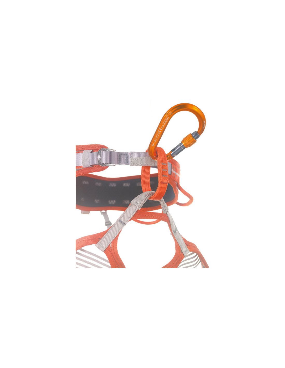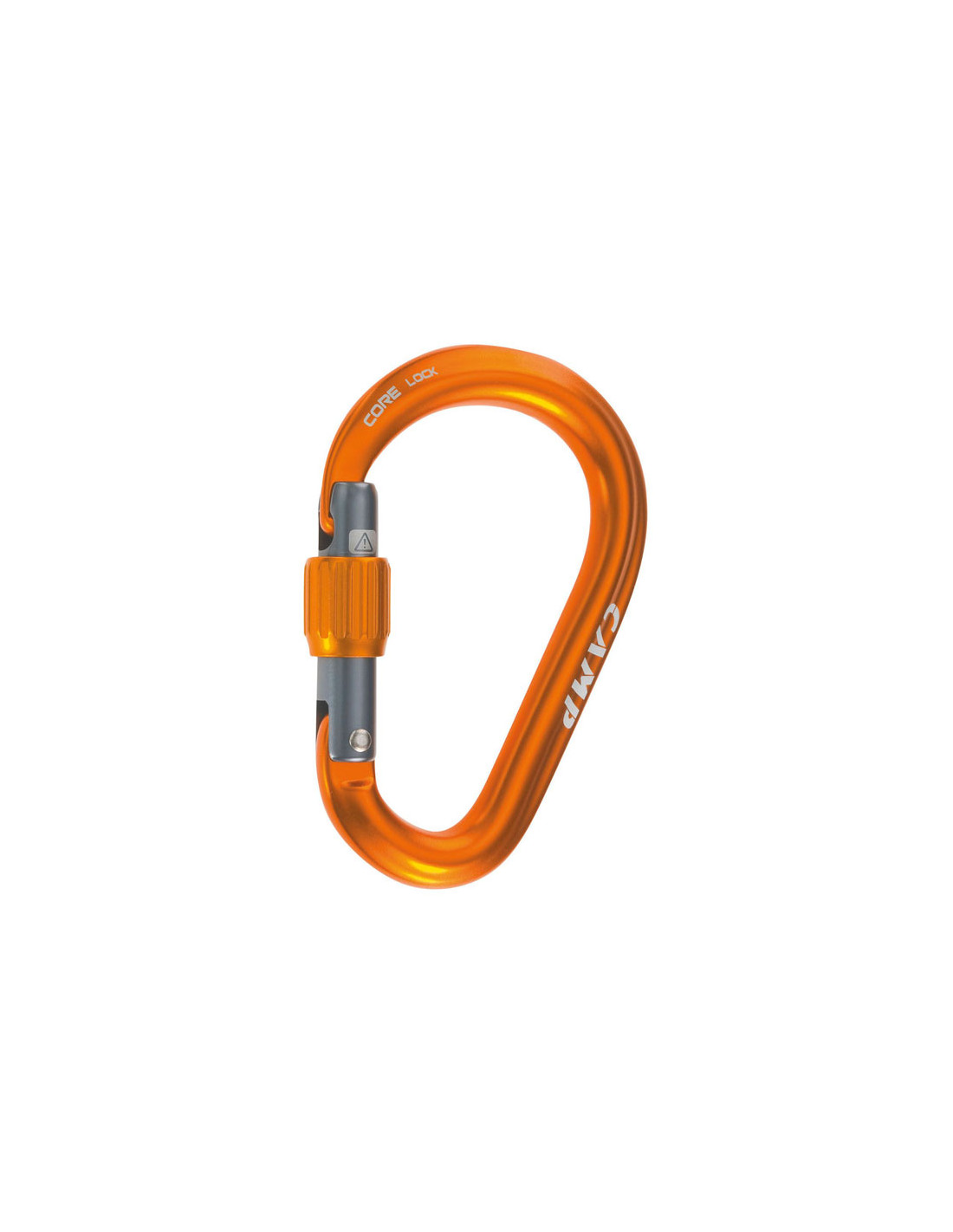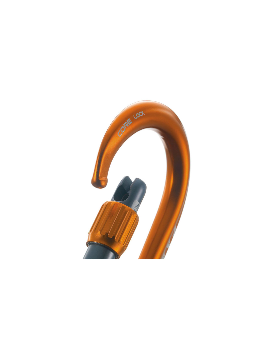 Core Lock har en skruelukning for at forhindre uønskede åbninger med lasersikkerhedsmærkning, der indikerer, at karabinhagen ikke er helt lukket. Ideel til sikring eller rappellering takket være dens pæreform. Perfekt til brug med en dynamisk knude, bladvipper eller enhver anden knude med stort volumen.