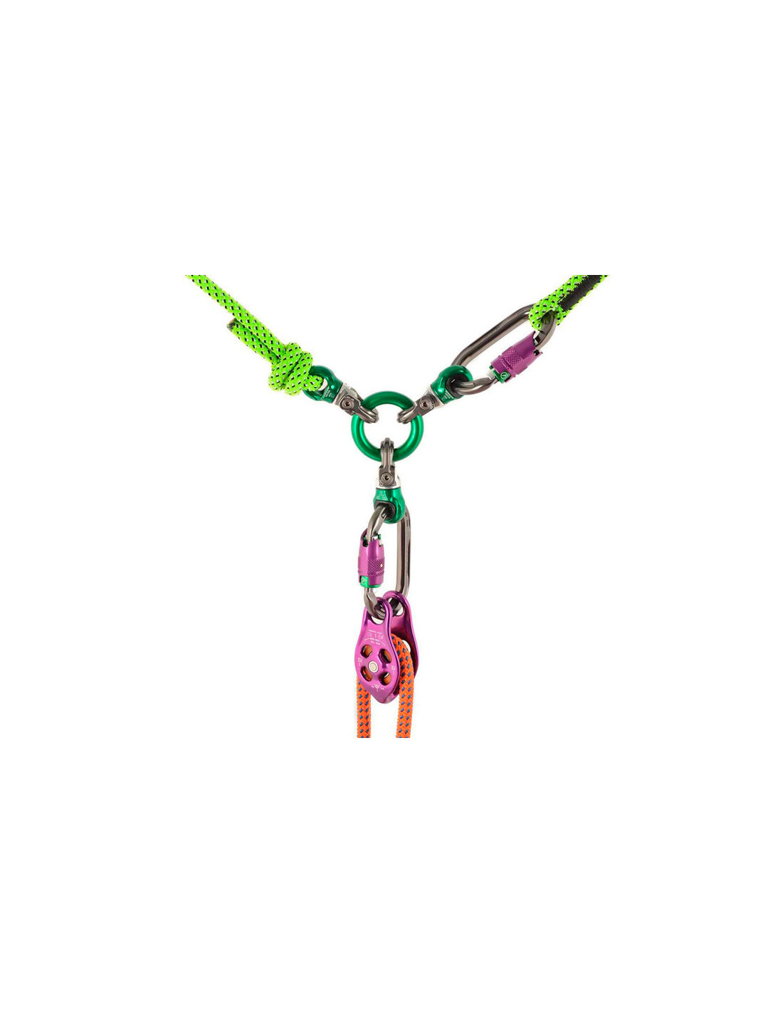 Zentrales Loch, das mit den meisten HMS-Karabinern kompatibel ist, und eine Konstruktion, die in Paniksituationen des Sichernden den Reflexbewegungen des menschlichen Körpers gehorcht und entsprechend handelt.