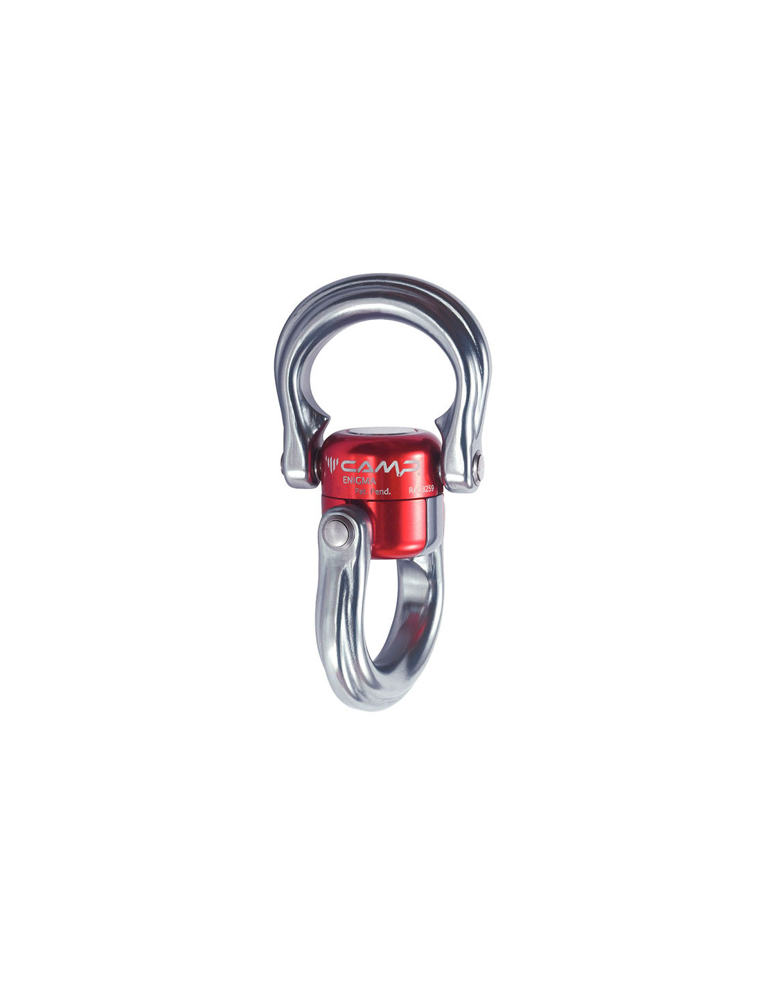 Enigma is een volledig openende wartel met grote draairingen die een directe verbinding van metalen en textielcomponenten mogelijk maken zonder de noodzaak van karabijnhaken. Het roterende lichaam integreert naadloos met de draairingen, waardoor ongelooflijke bewegings- en oriëntatievrijheid mogelijk is.