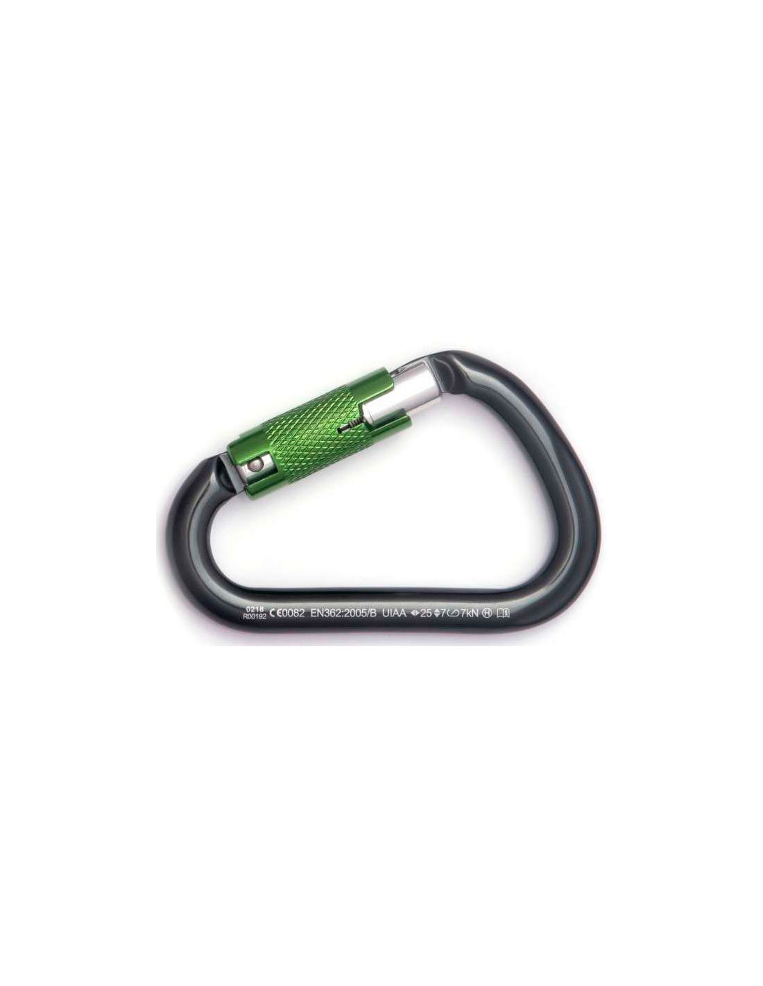 Fixa säkerhetskarbinhake av typ HMS med 3 lägen med stor öppning och storlek. Tillverkad av aluminium med en cirkulär profil för användning med dynamiska knutar och automatisk stängning.