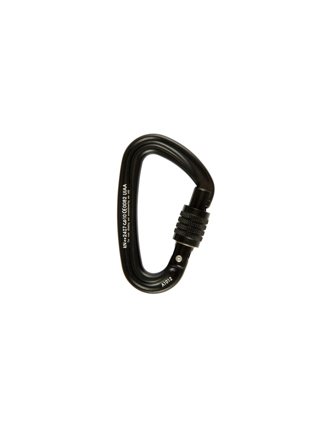 Asymmetrisk karbinhake från märket Metolius med säkerhetsstängning och fäste av typ Keylock.
