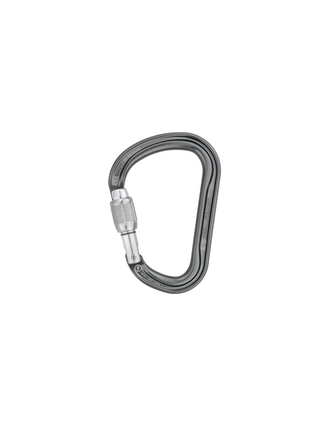 HMS karbinhake med skruvstängning, päronformad för rynkning och fastsättning med en dynamisk knut. Praktiskt att enkelt koppla ihop flera element. Dess ergonomi och Keylock-system gör manipulationer enklare, även med handskar.